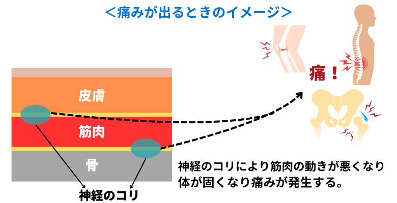 神経がコリ固まり、伝達障害が起こり